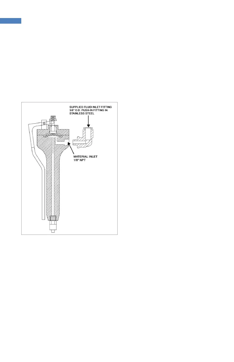 fed into the valve through 3/8" O.D. tubing. Depending on material viscosity, dispense