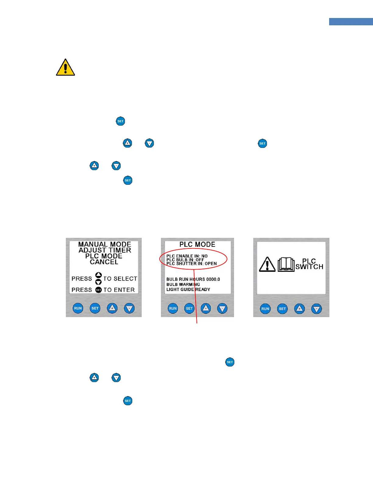 3. Use the and Arrows to select “PLC MODE”. When selected, “PLC MODE” will flash.