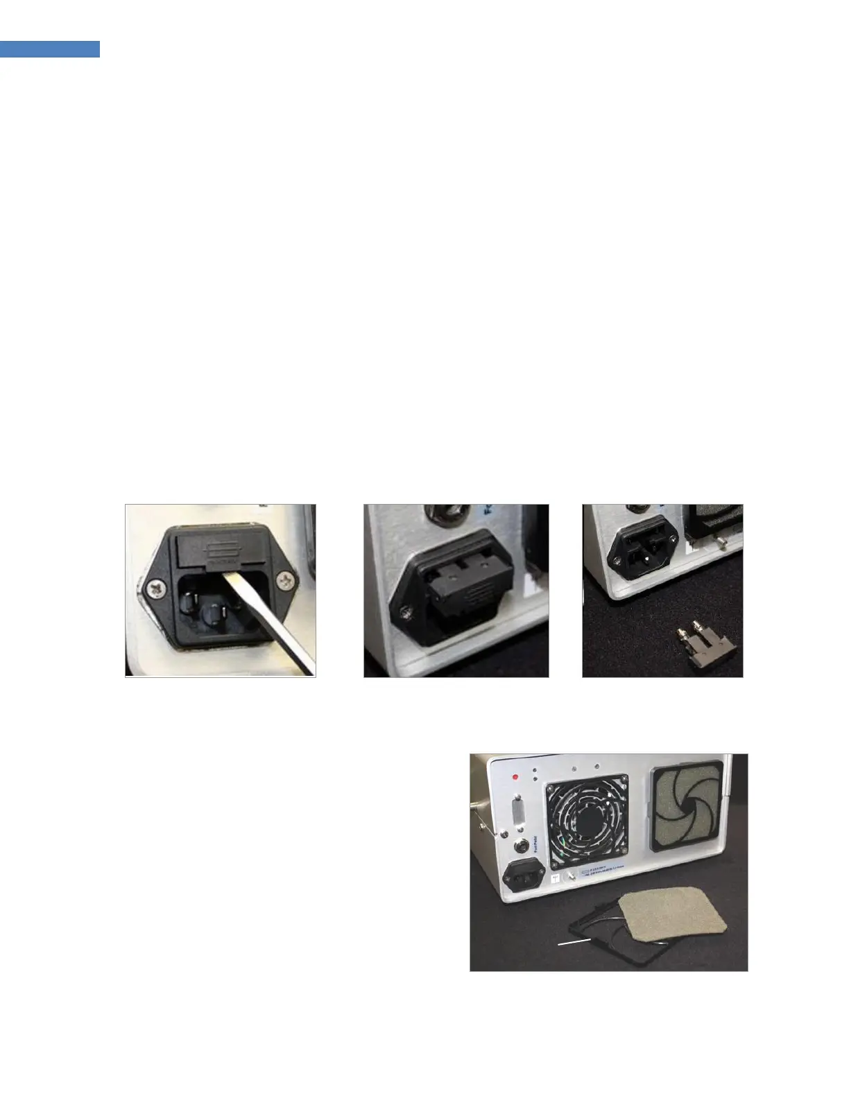 The unit has two Fuses that are installed in the Power Receptacle. To remove the Fuses, unplug the unit and