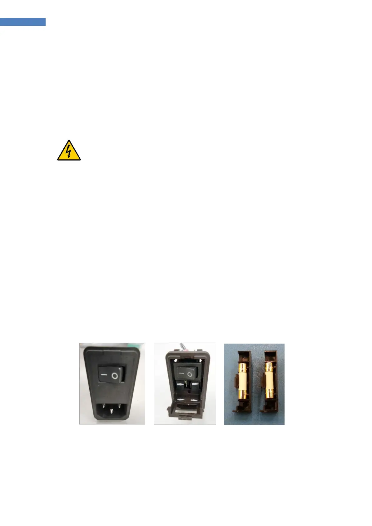 WARNING! Electrical shock hazard. Exercise extreme care when replacing fuses. Make