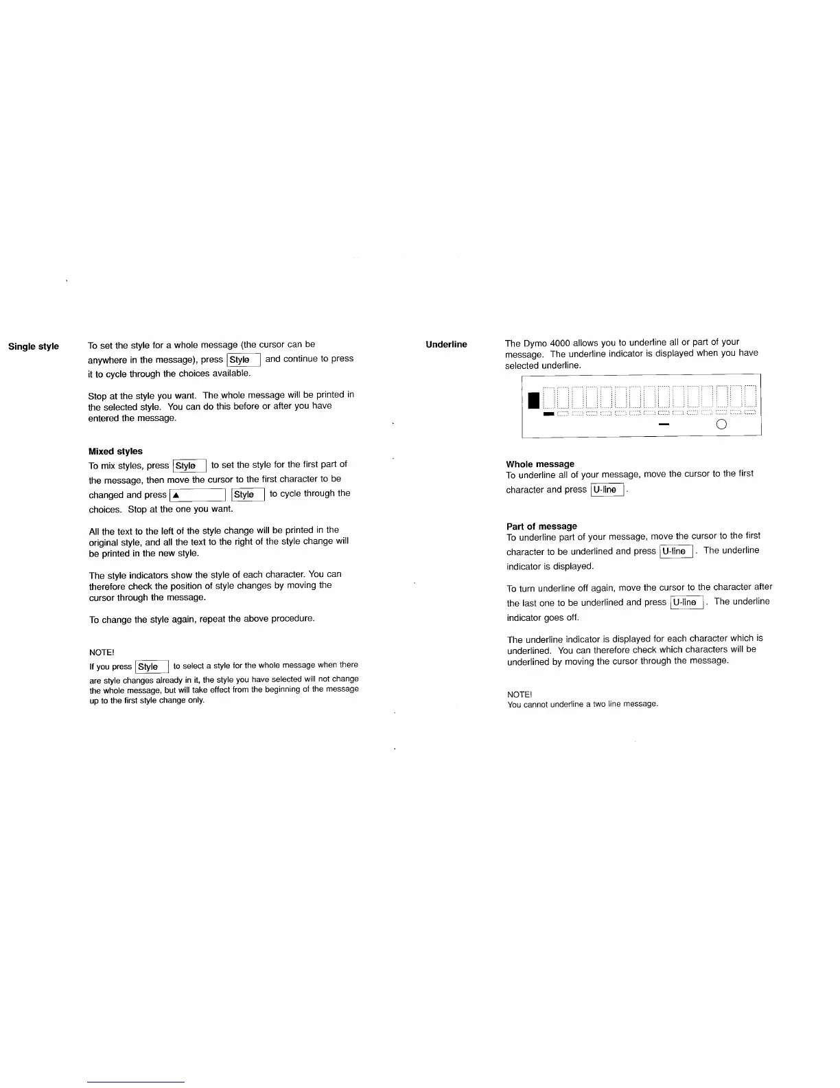Dymo 4000 - Text Enhancements; Underlining Text