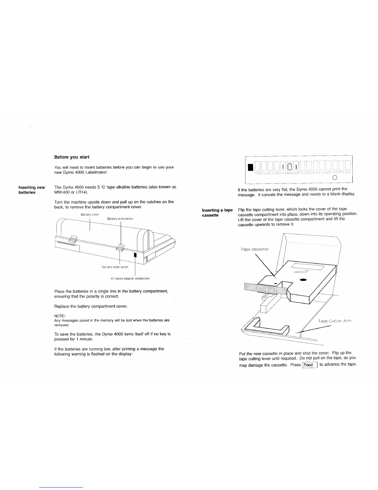 Dymo 4000 - Getting Started; Inserting Batteries; Inserting Tape Cassette