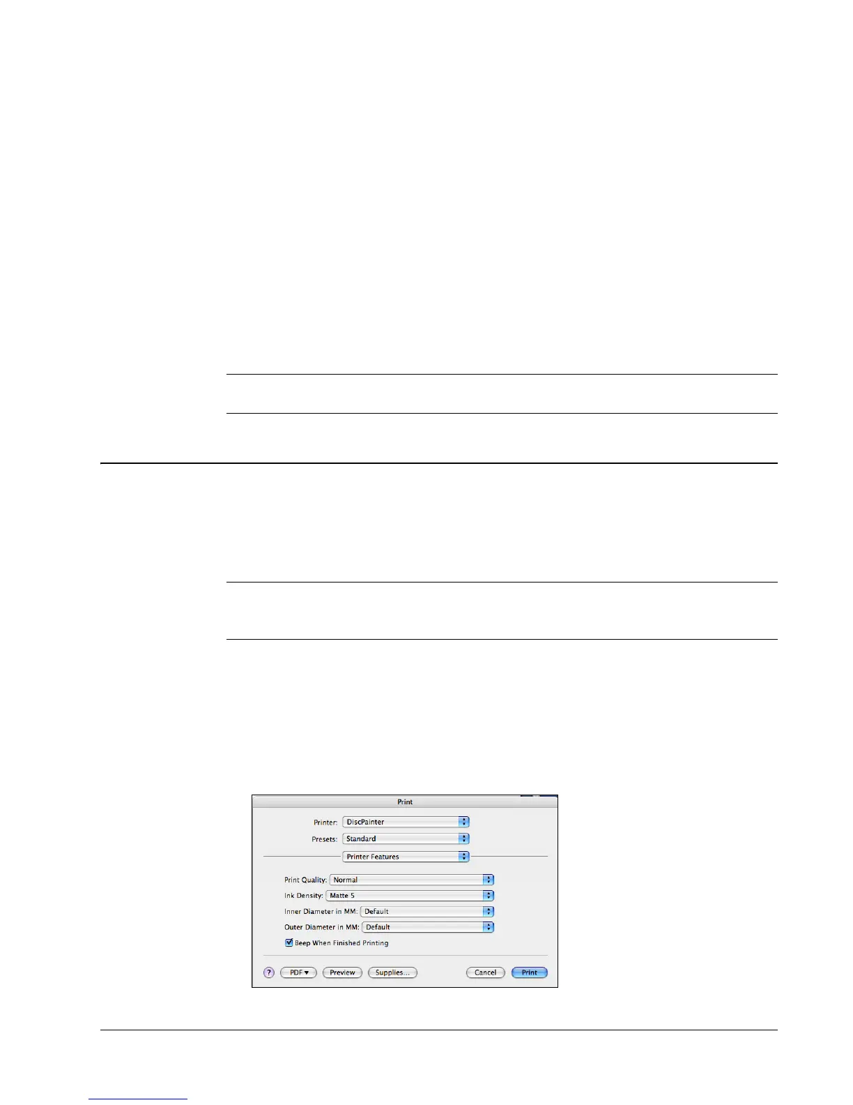Note This section describes how to define print options when using your DiscPainter printer with