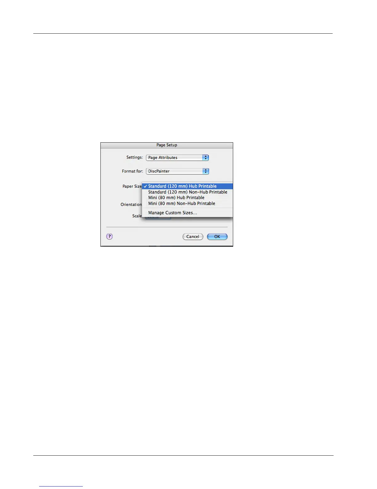 4 From the Paper Size drop-down list, select the disc setting that matches the size and type of