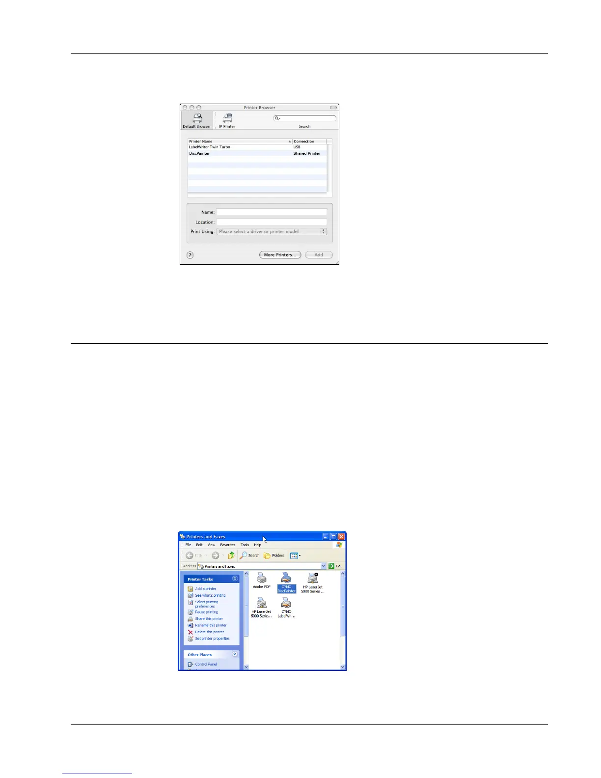 This section describes how to print to a shared DiscPainter printer in a Windows XP workgroup.