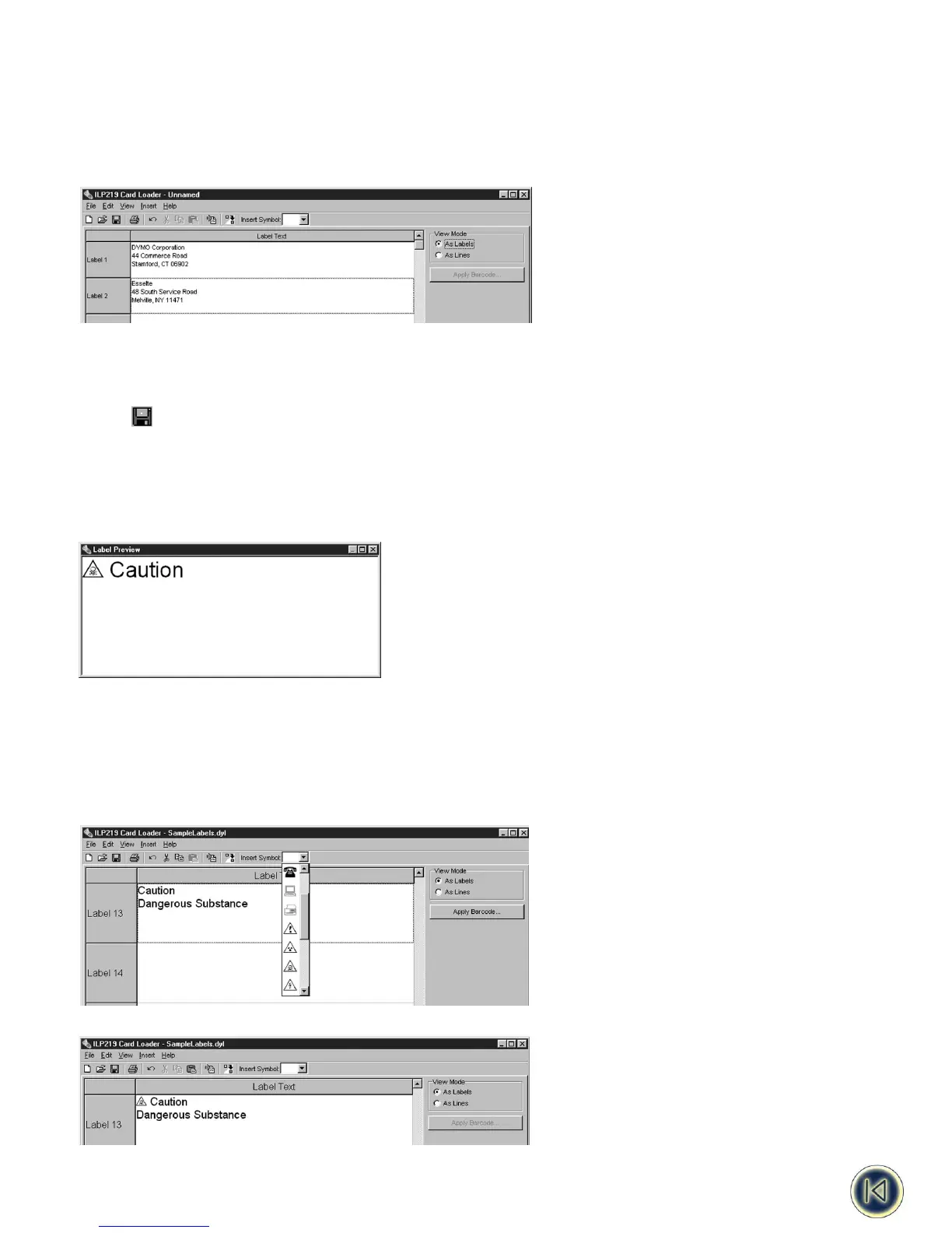 The label set is saved to your hard disk with a .dyl extension automatically added to the file name.