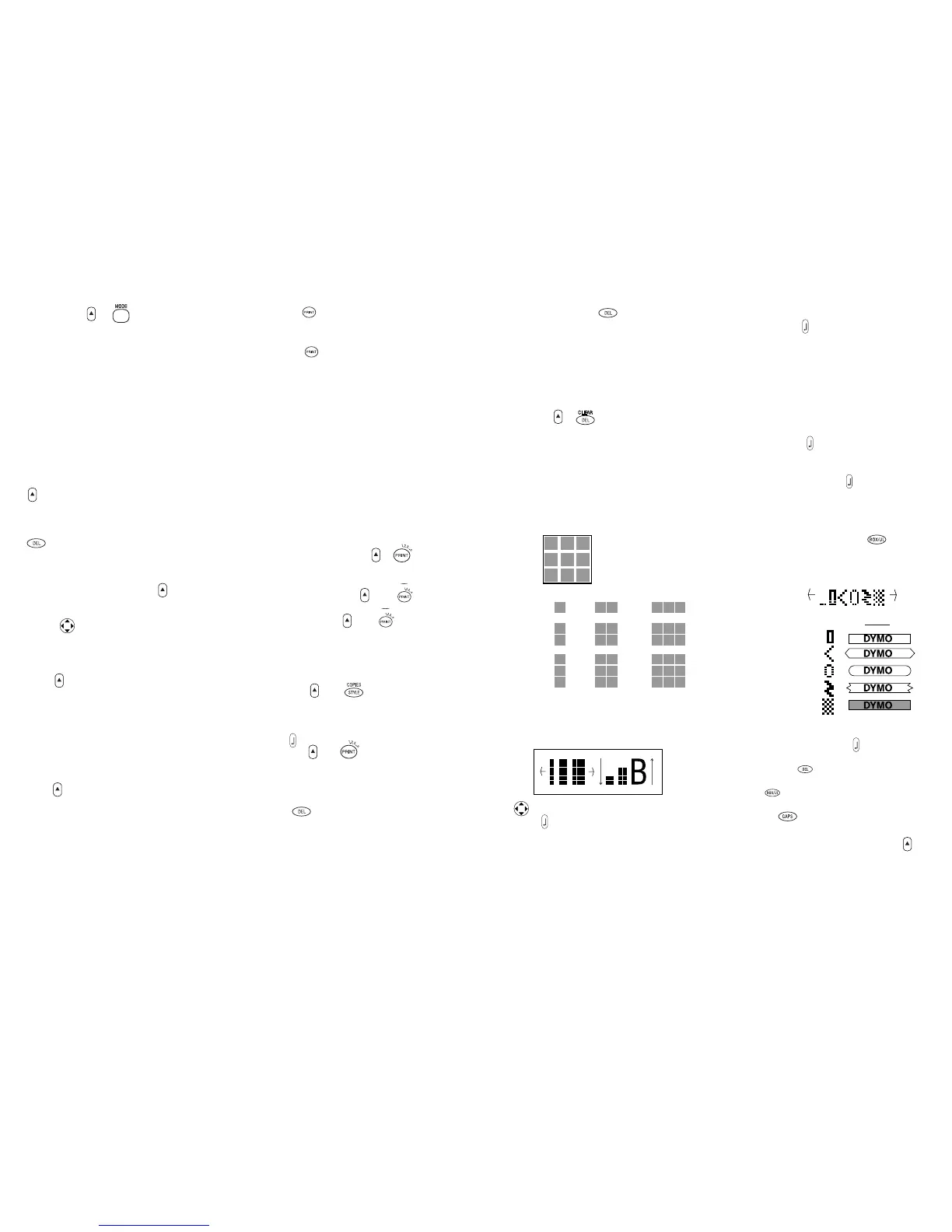 • To create a label in "B" mode, press SIZE for