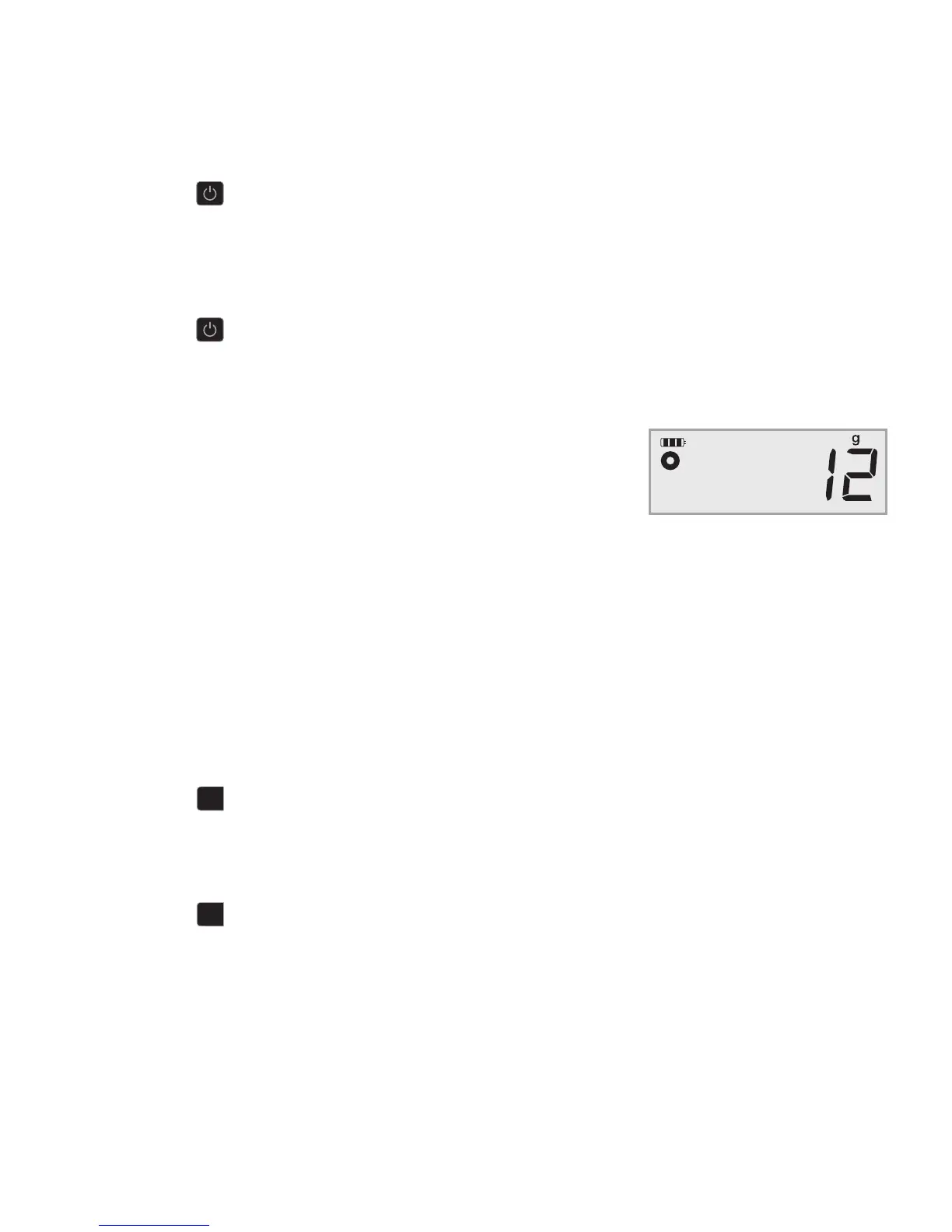 wiegen, damit sich die Waage stabilisieren kann. Das Display zeigt 0 g, 0.0 oz, oder 0.00 oz an,