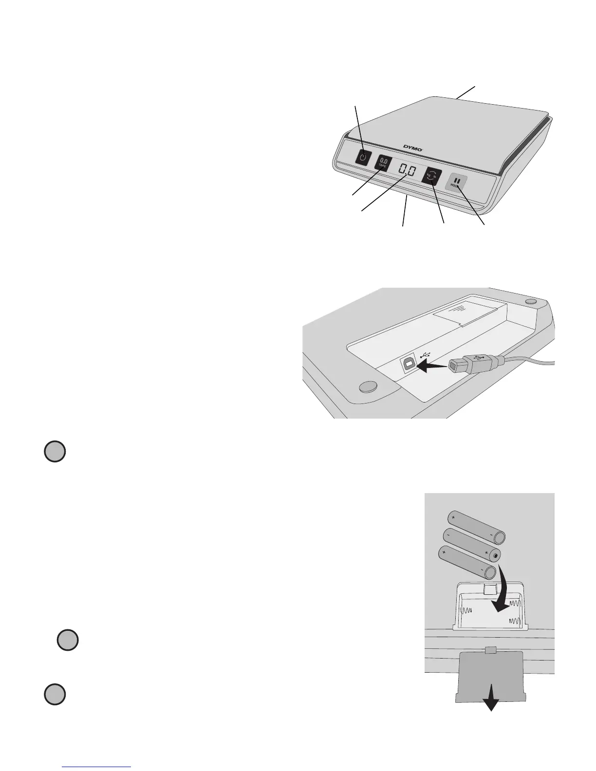 4. Insira três pilhas AAA, conforme indicado.