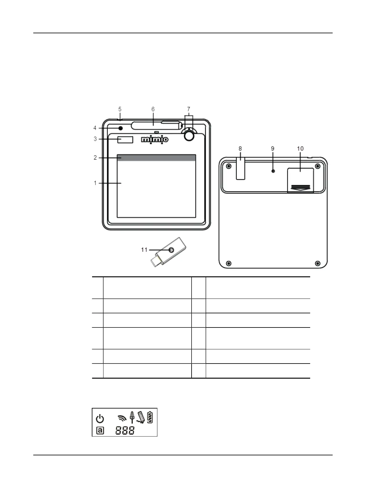 Become familiar with the features of your Mimio Pad as shown in the following