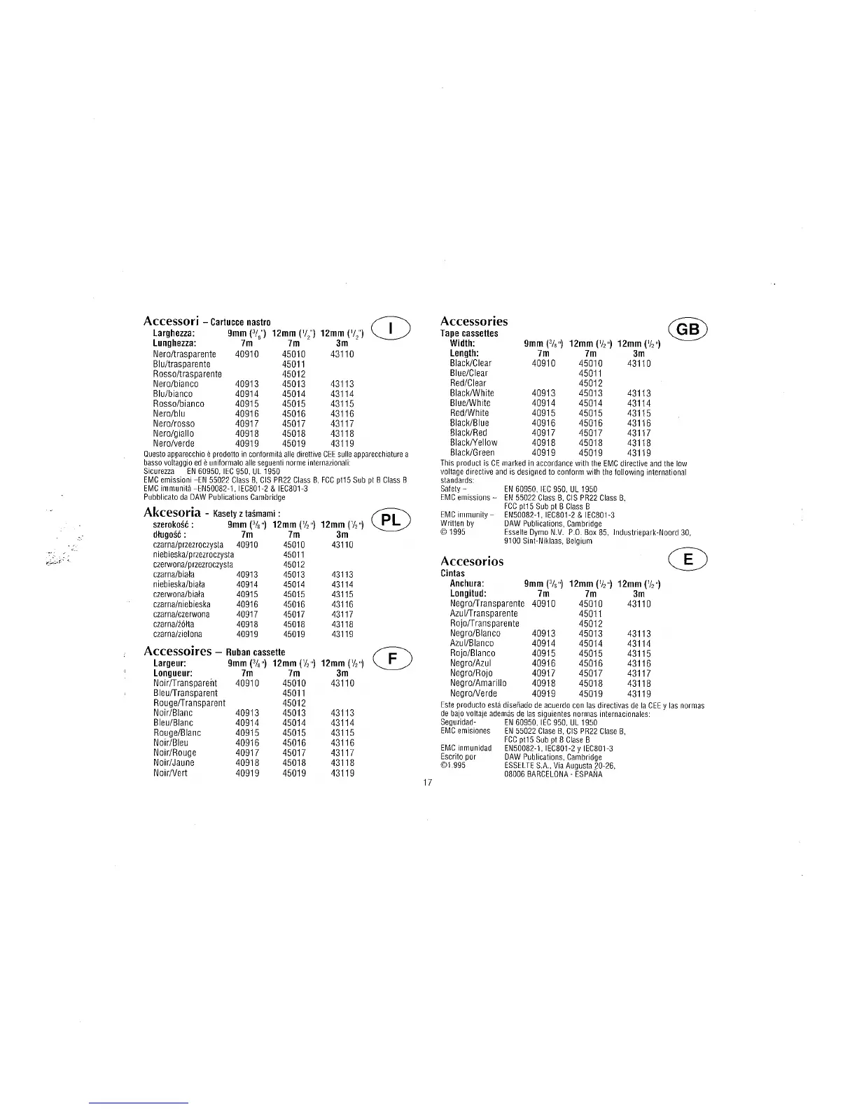 Dymo Pocket - Accessories Information; Tape Cassette Options