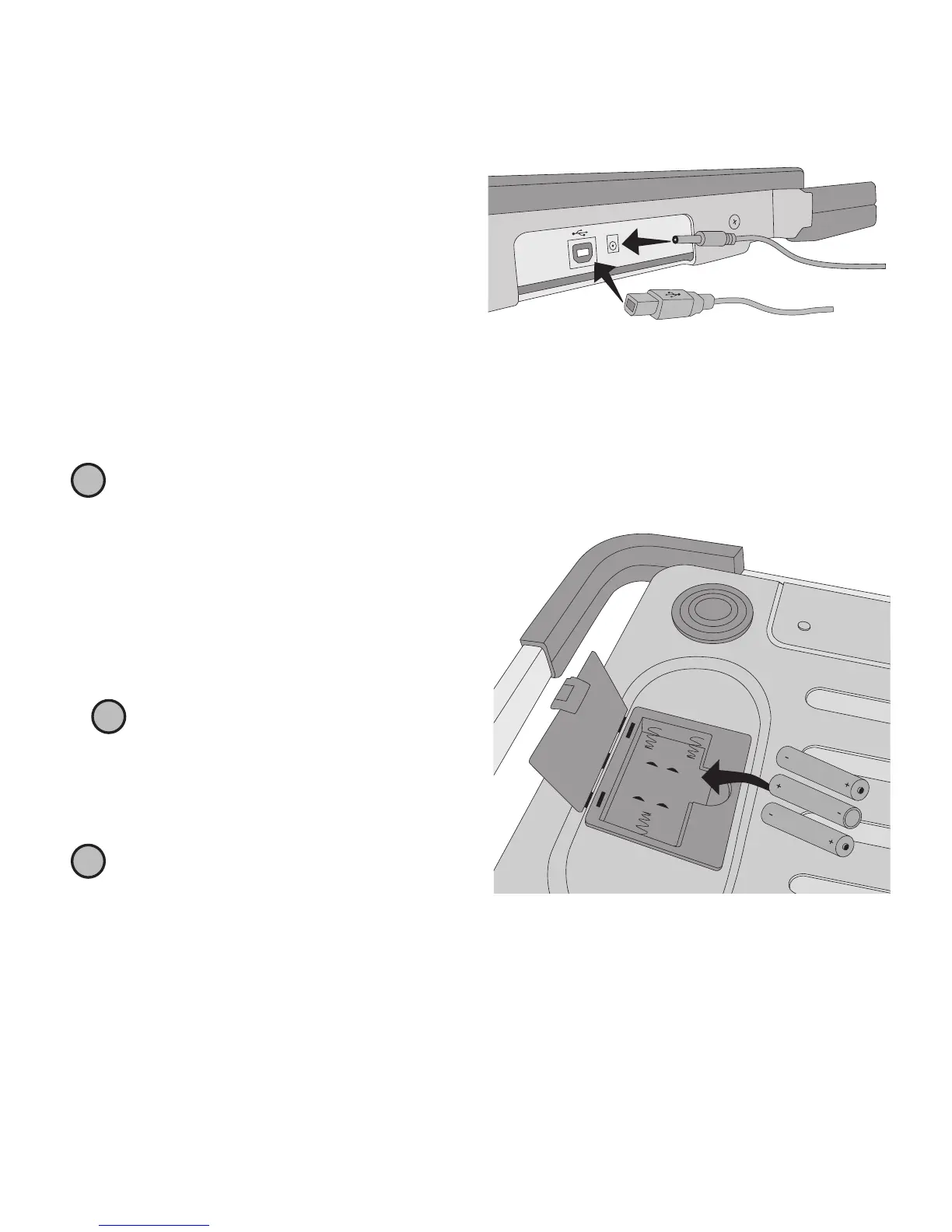 3. Insira três pilhas AAA, conforme indicado.