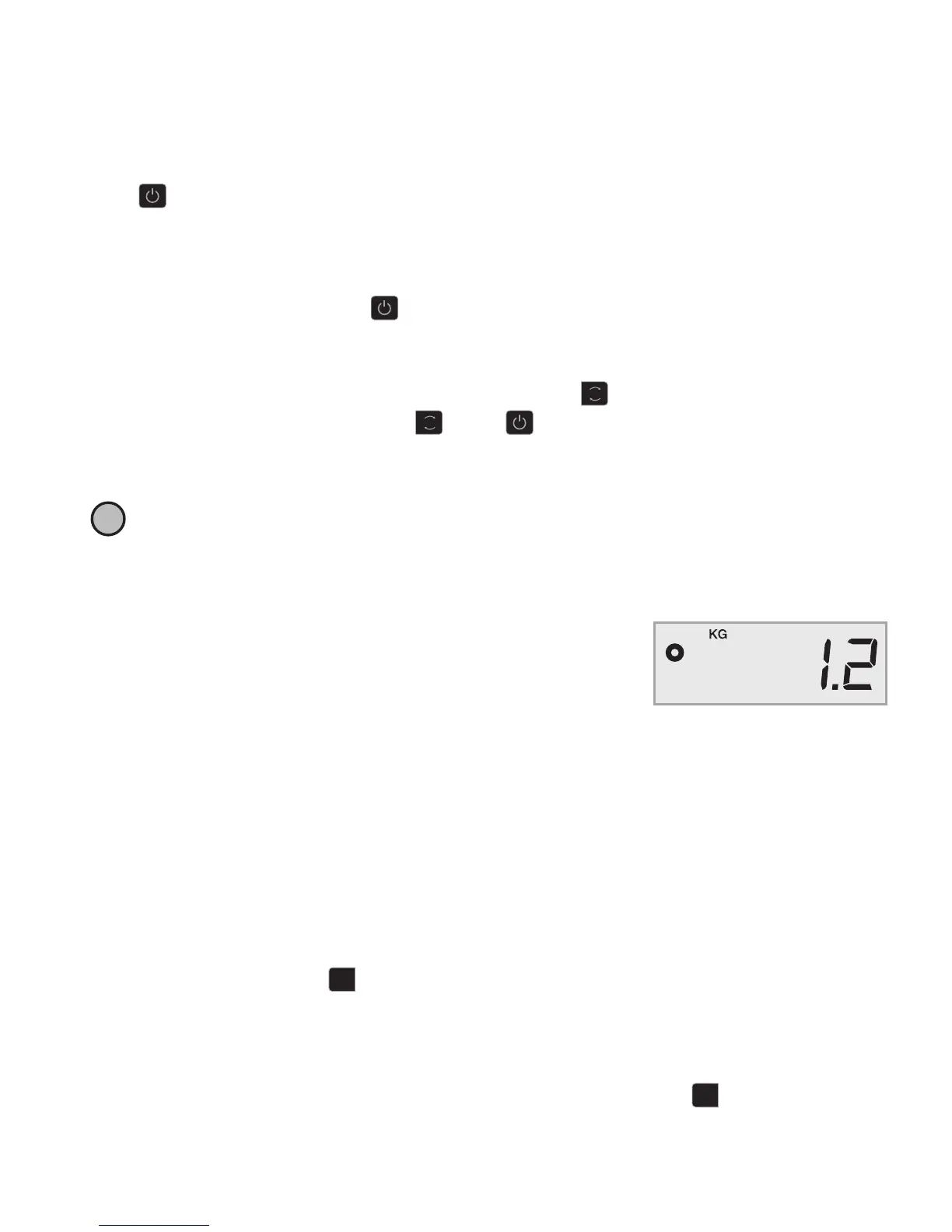 1. Kun vaa'an virta on kytketty pois, paina ja pidä alhaalla .