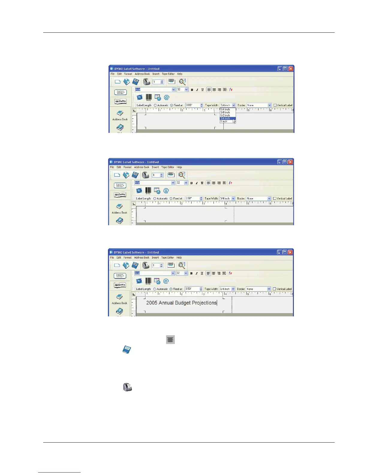 The text area of the main window changes in size based on the tape width you select.