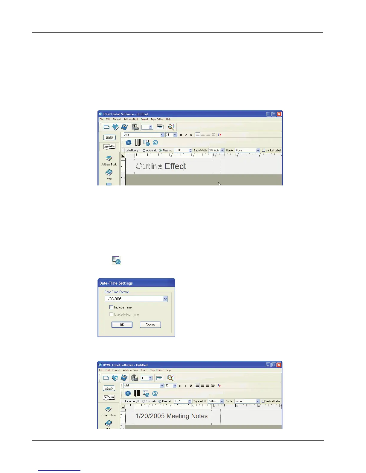 1 Place the cursor at the point on the label where you want the date and/or time stamp to appear.