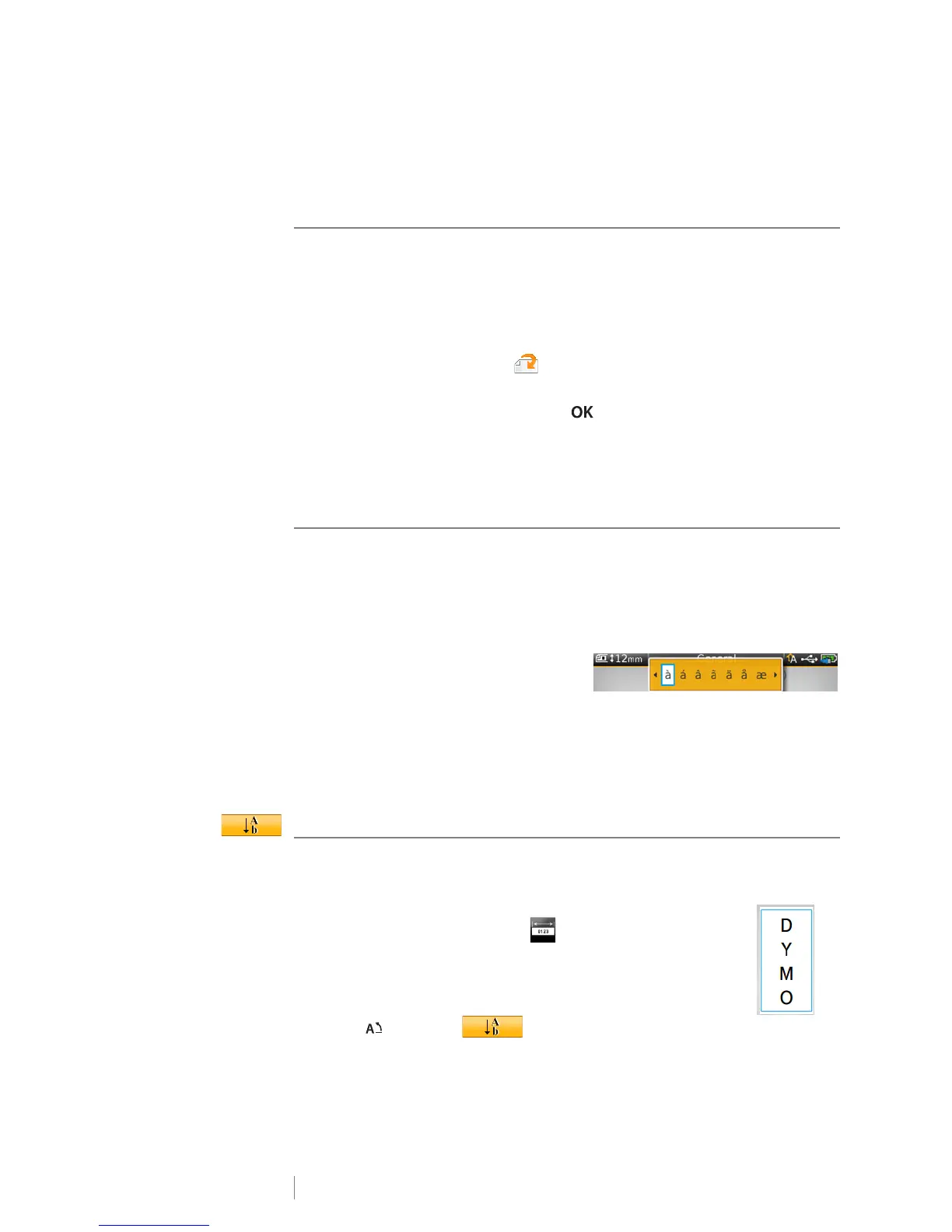 The label maker supports the extended Latin character set. Similar to using a