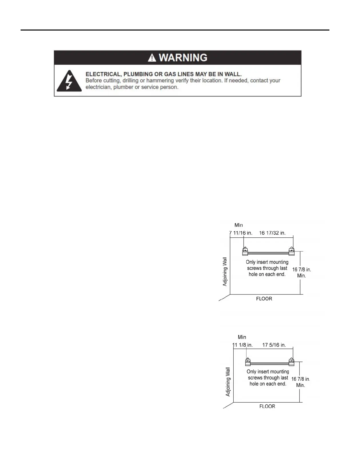 Use only the last hole on each end of mounting bracket to attach bracket to wall. Attach