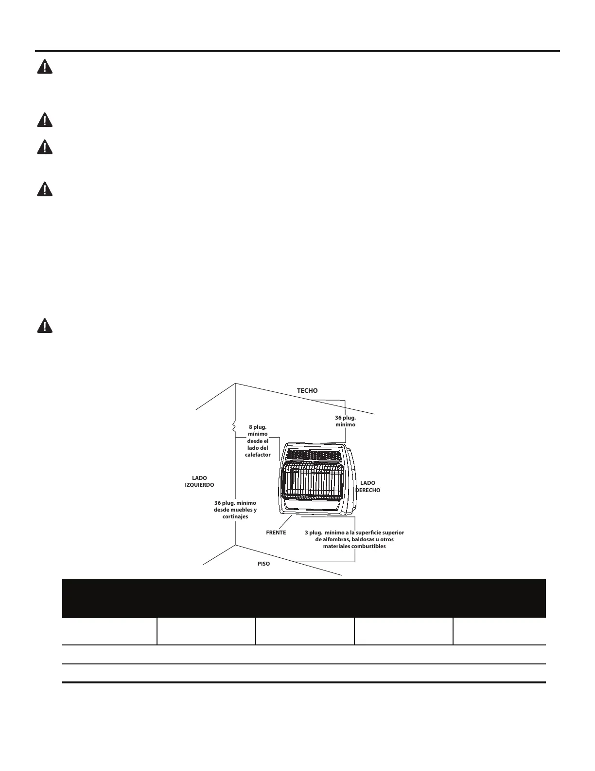 ADVERTENCIA: Un técnico calicado debe instalar el calefactor. Siga todos los códigos locales.