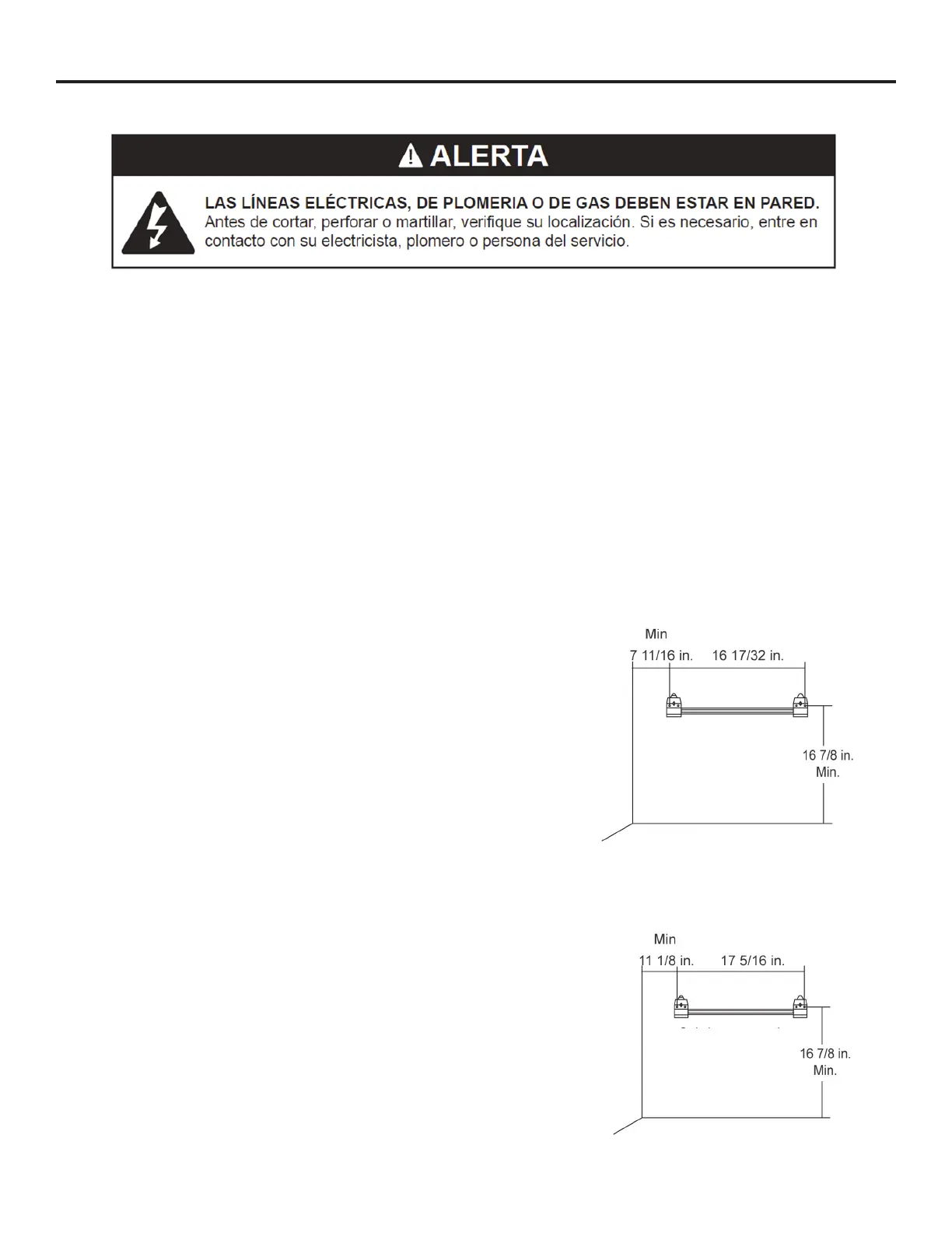 huecas (áreas de la pared entre montantes) o a paredes sólidas (concreto o mampostería).
