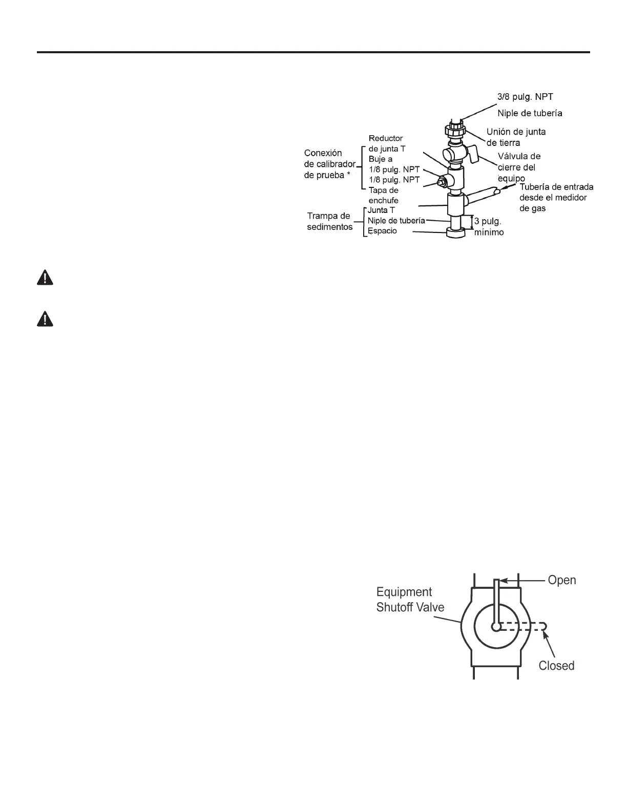 ADVERTENCIA: Pruebe toda la tubería y conexiones de gas en contra de fugas después