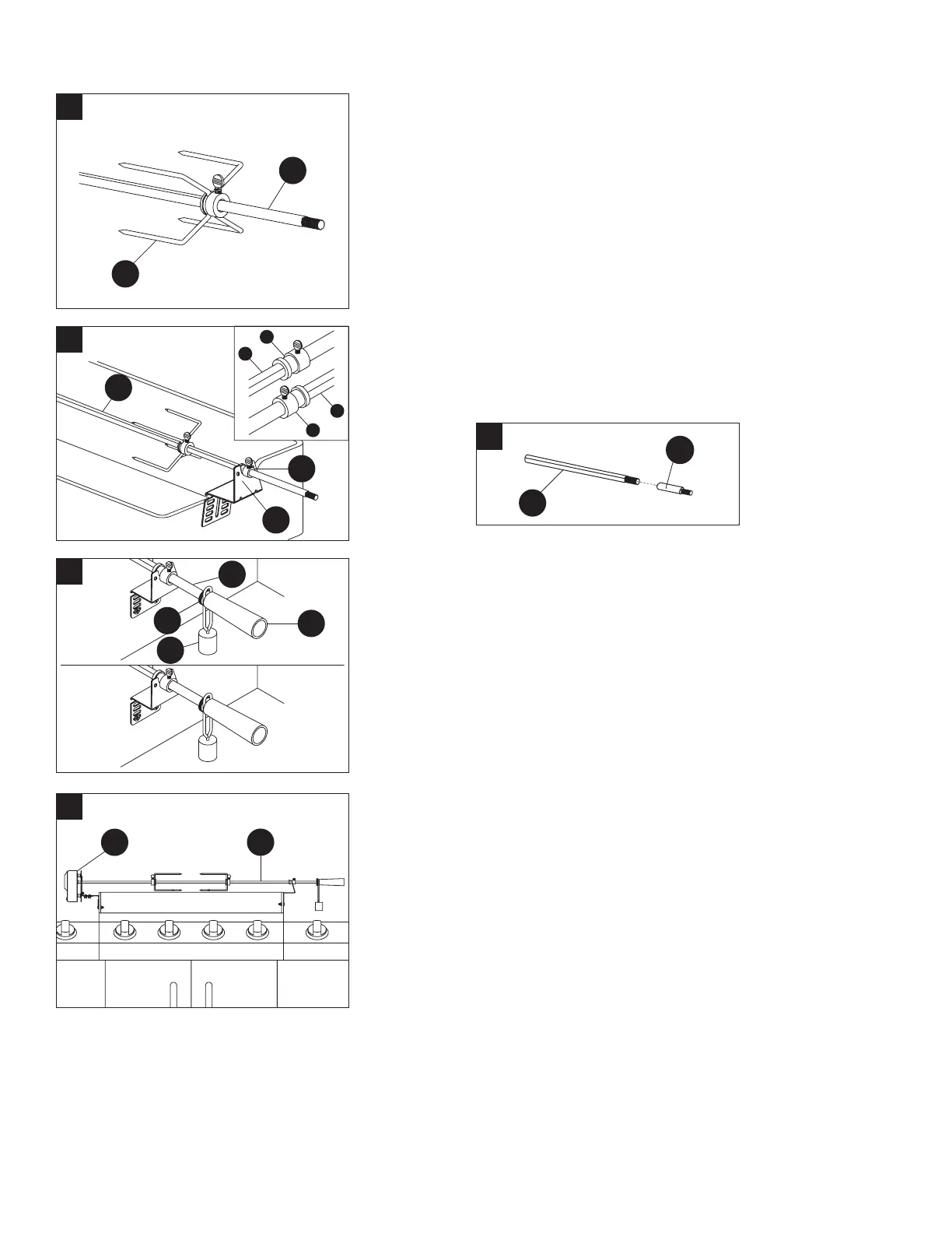 5. Vissez la rondelle (F) du contrepoids sur la tige à rôtir (B).