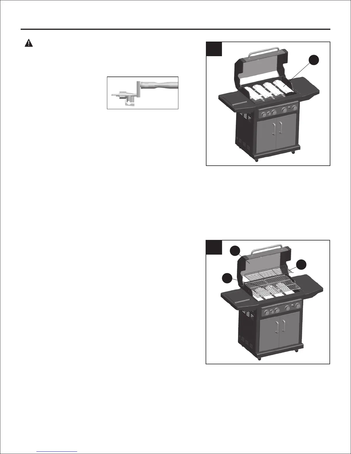 the grill body (O) and tighten screws. Insert