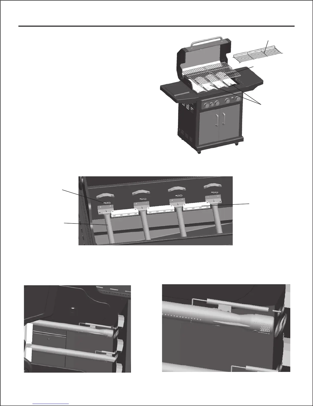 the grill body (O) and tighten screws. Insert