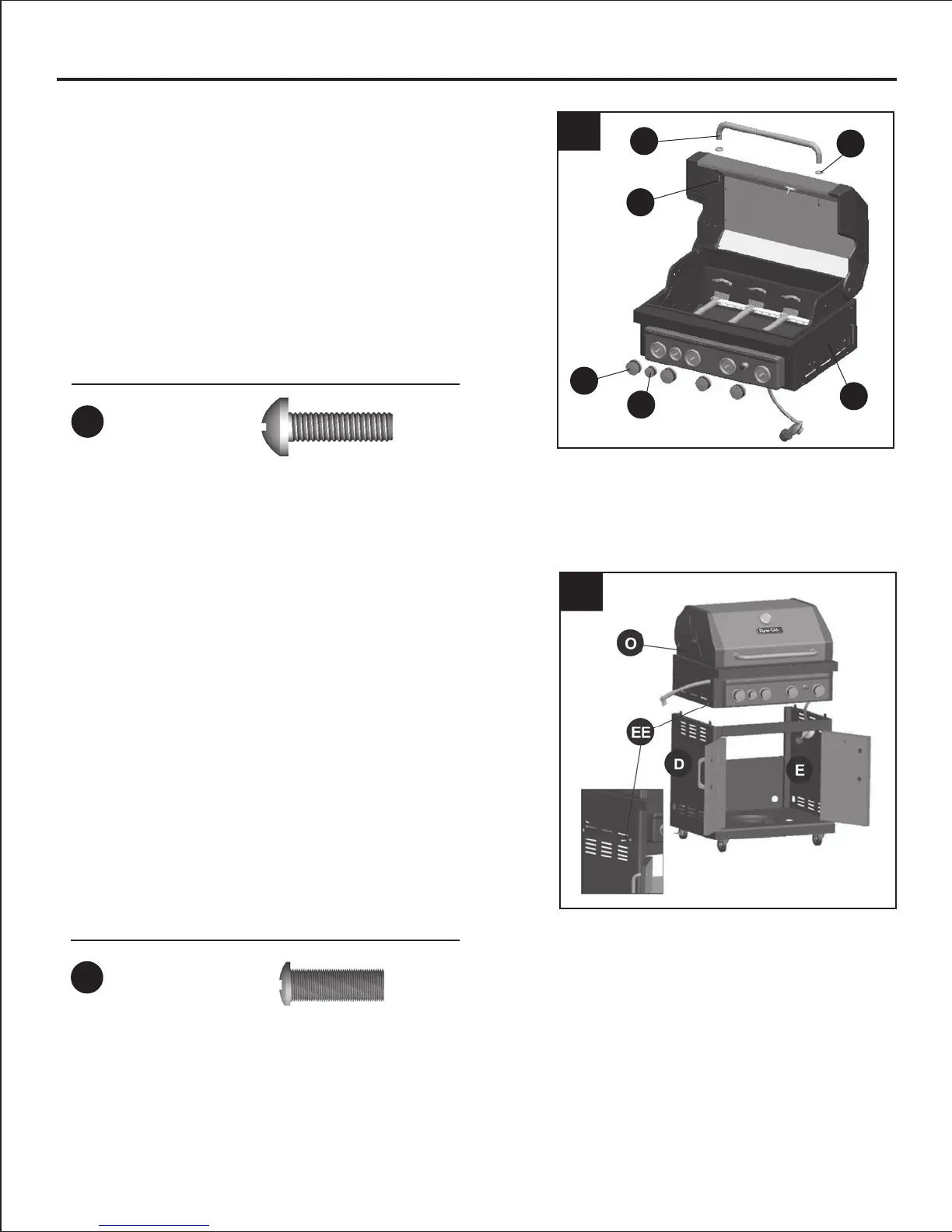 la parrilla (O) con 2 tornillos (EE) en cada