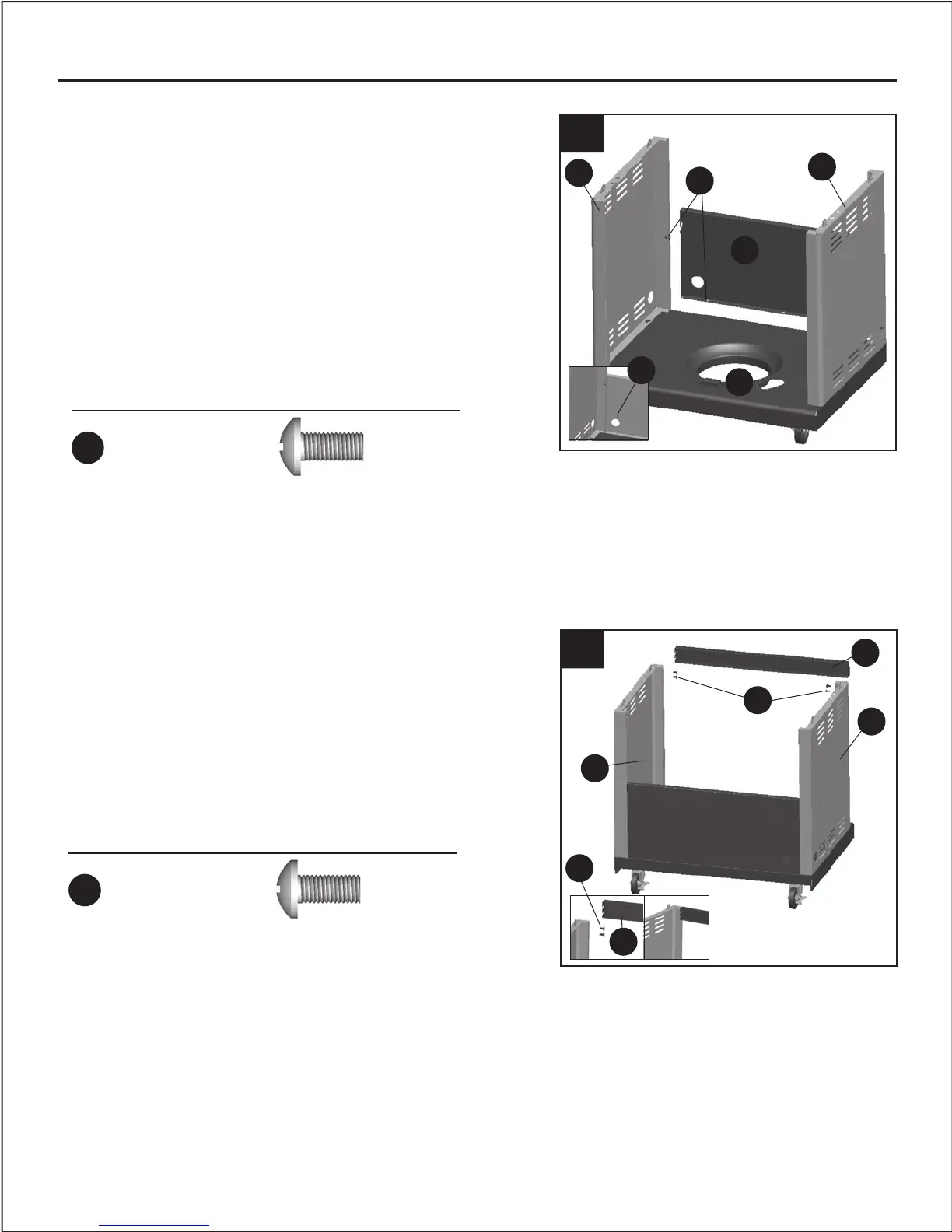 the grill body (O) and tighten screws. Insert