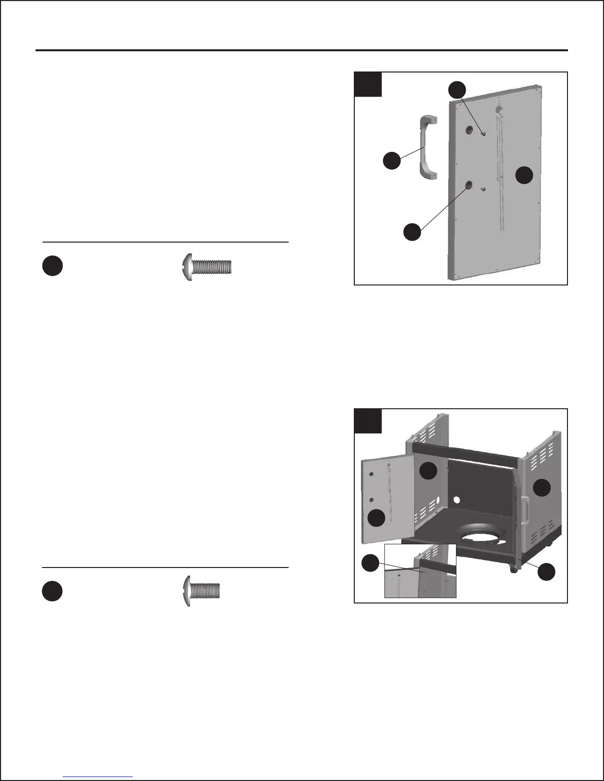the grill body (O) and tighten screws. Insert
