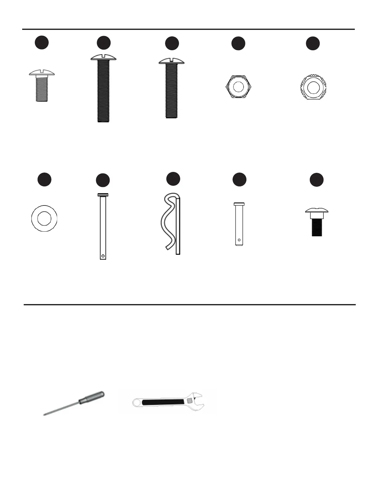 Tools Required for Assembly (not included): Phillips screwdriver, Adjustable wrench