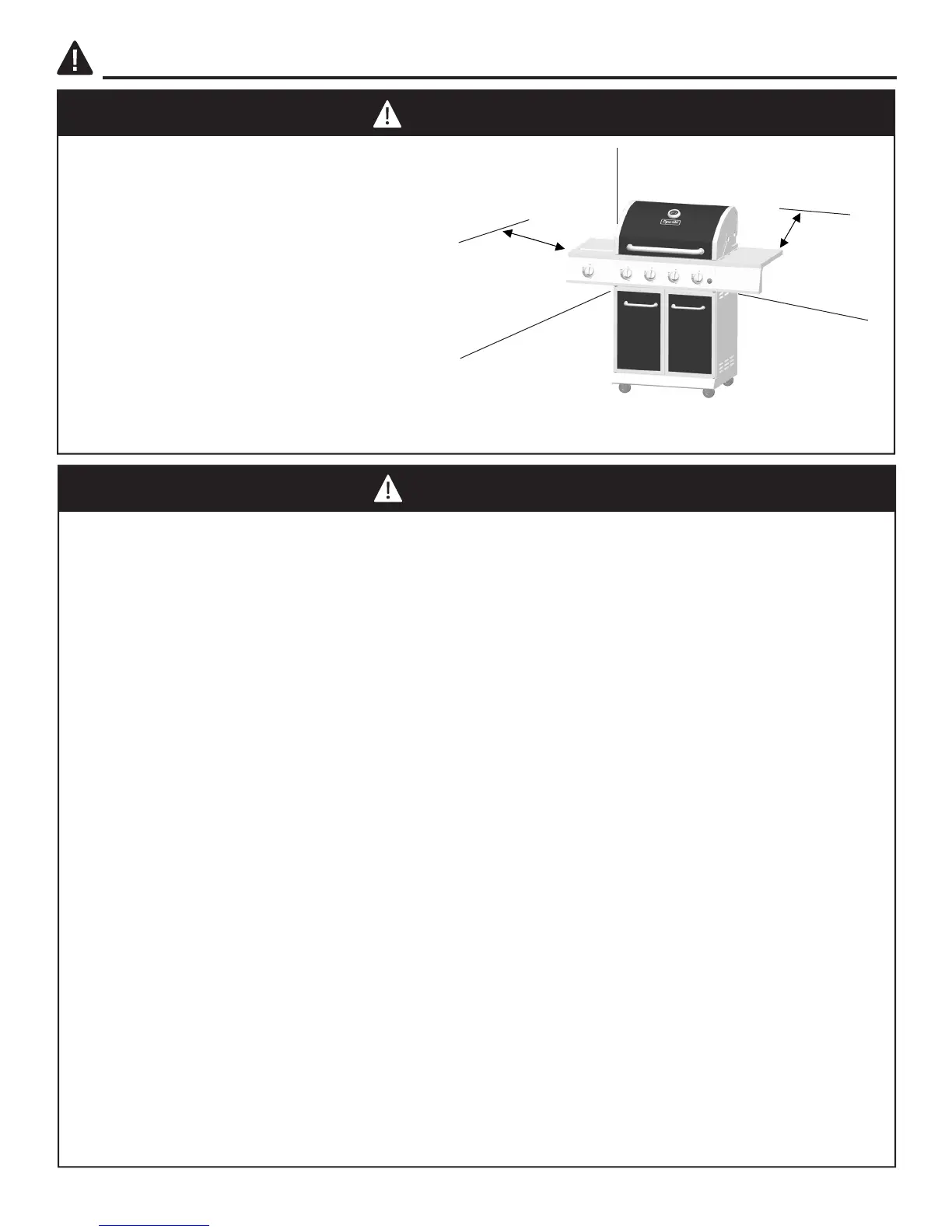 • Keep all combustible items and surfaces at least 36 inches (91.44 cm) away from the grill at all