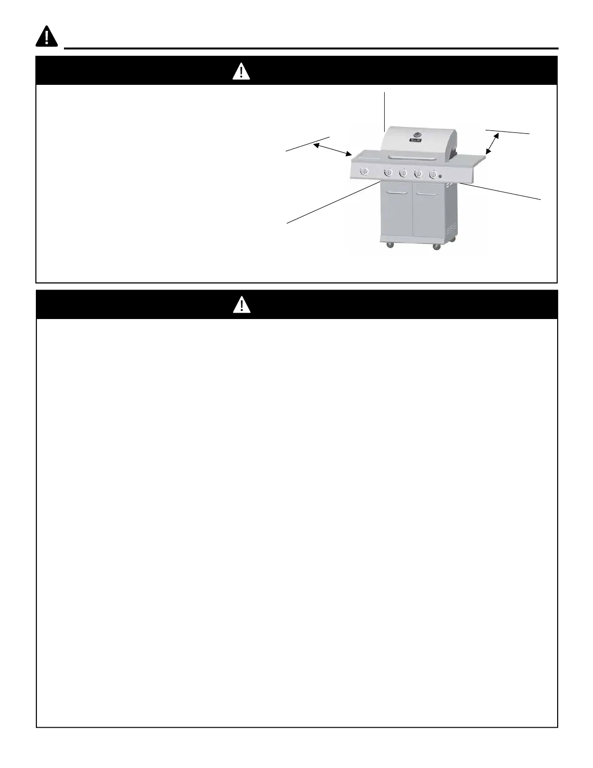 • Keep all combustible items and surfaces at least 36 inches (91.44 cm) away from the grill at all