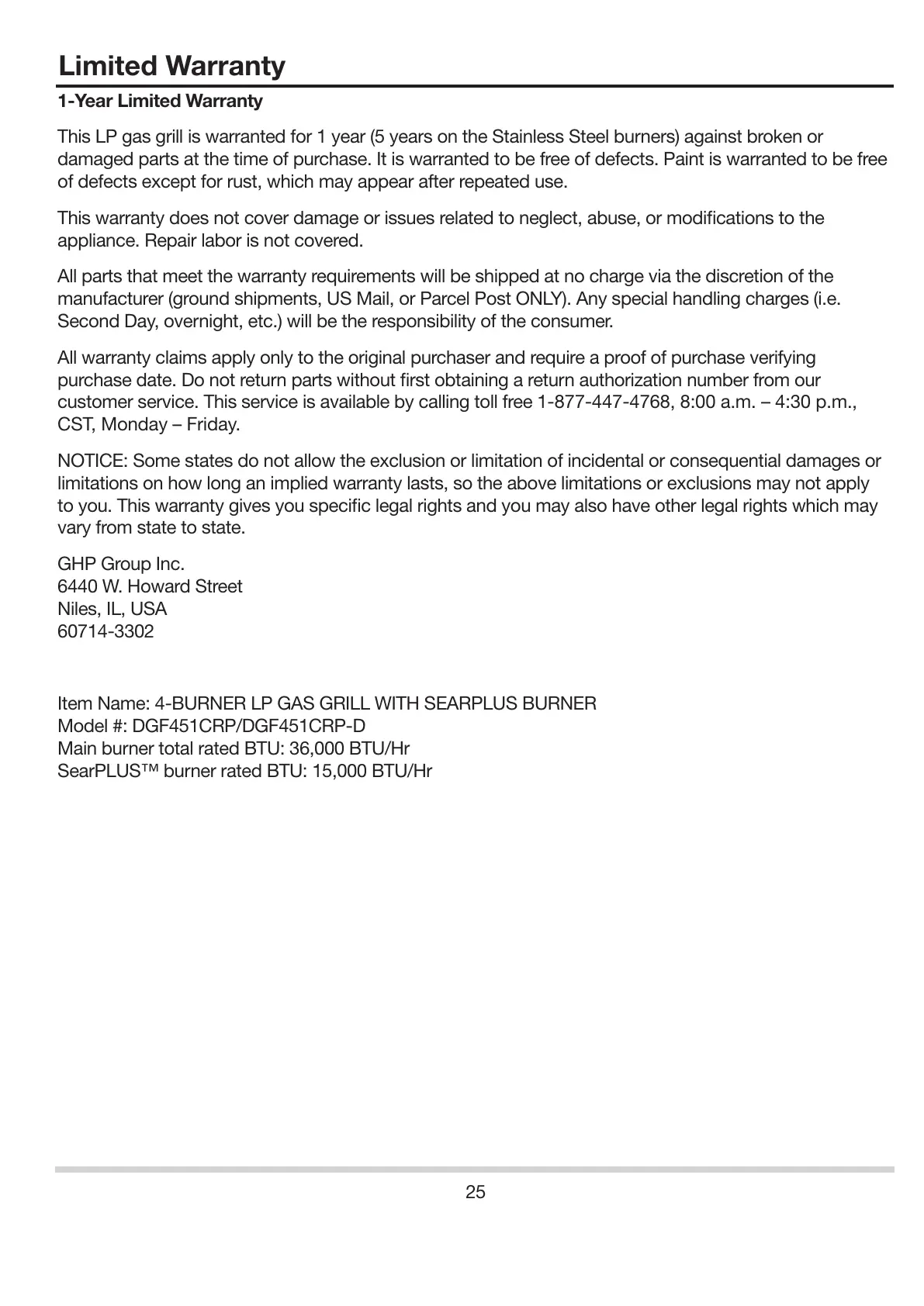 Item Name: 4-BURNER LP GAS GRILL WITH SEARPLUS BURNER