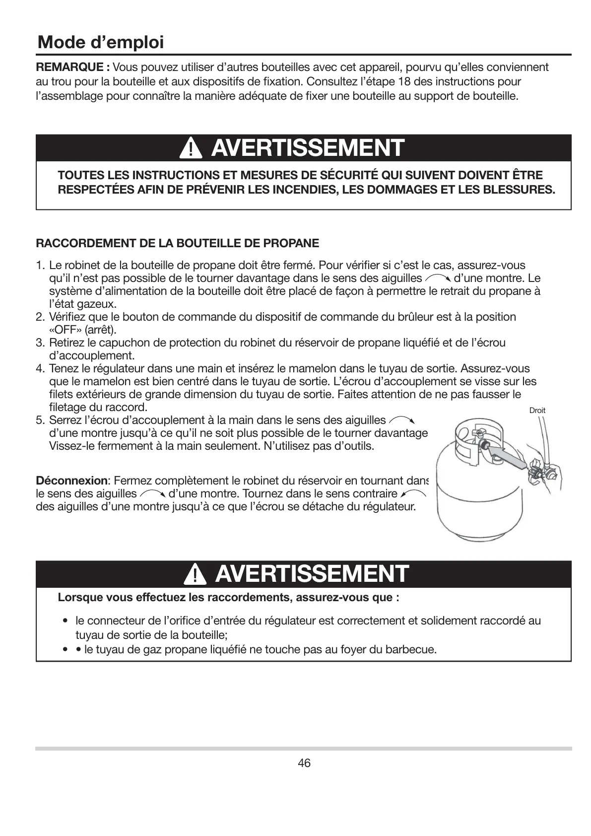 RACCORDEMENT DE LA BOUTEILLE DE PROPANE