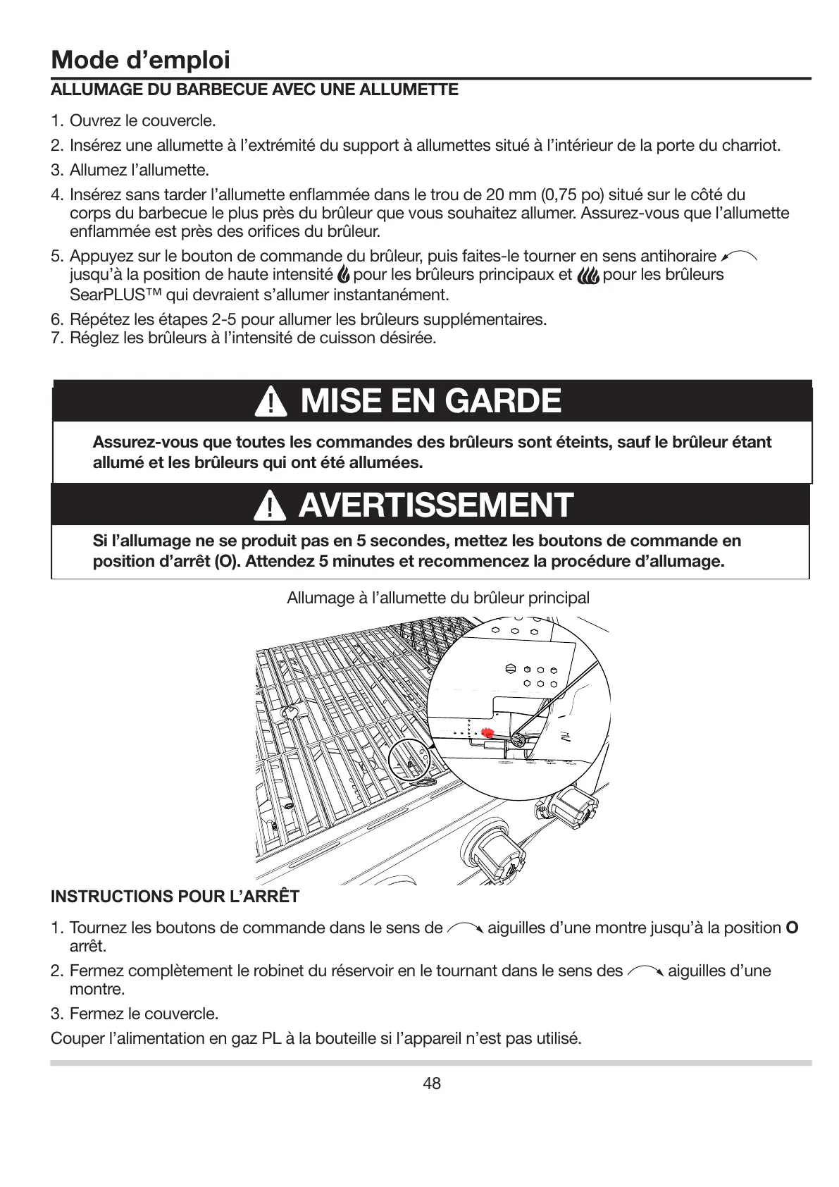 Allumage à l’allumette du brûleur principal