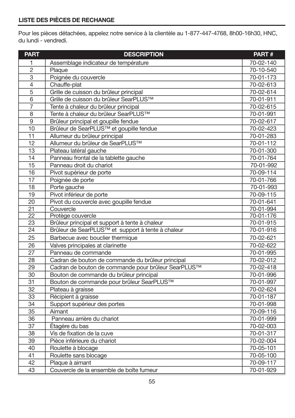 Pour les pièces détachées, appelez notre service à la clientèle au 1-877-447-4768, 8h00-16h30, HNC,