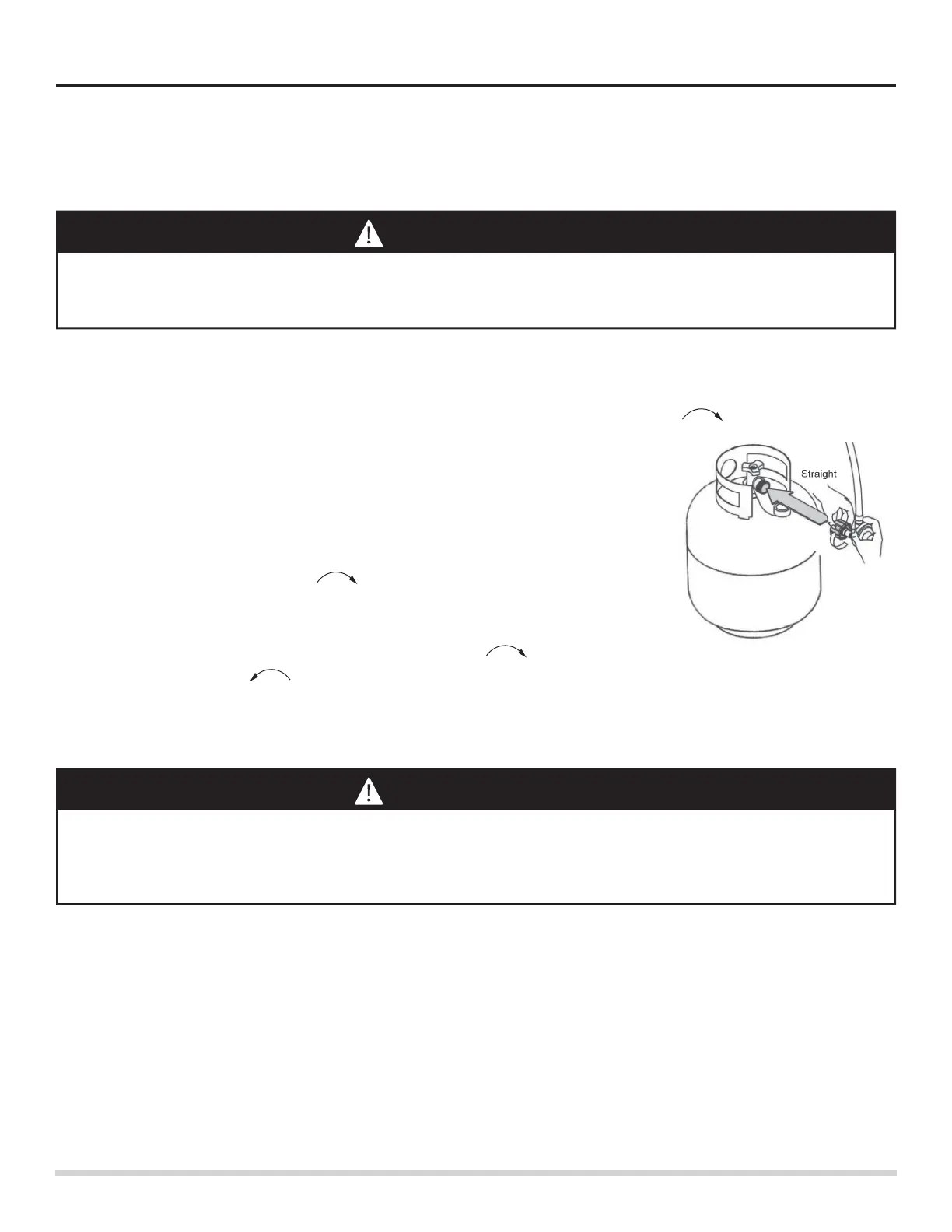 1. The knob on the LP tank must be closed. Make sure that the knob is turned clockwise to a