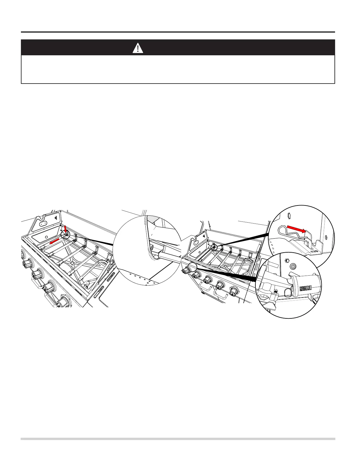 Reattach each burner with the hinge pin and reattach the ignition wire to electrode.