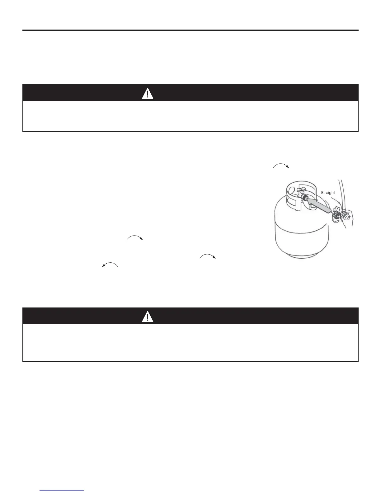 1. The knob on the LP tank must be closed. Make sure that the knob is turned clockwise to a