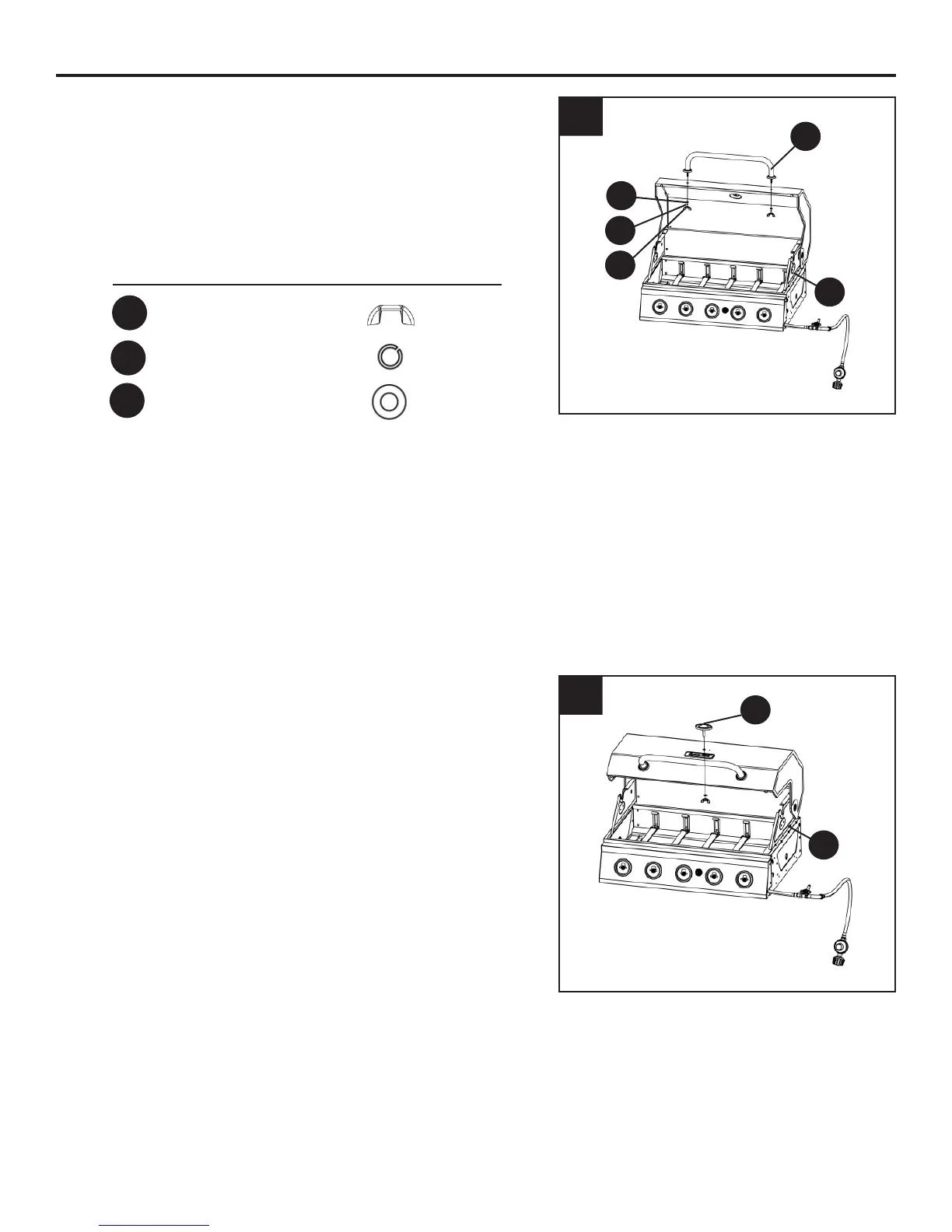 9. Fixez la poignée du couvercle (A) du barbecue