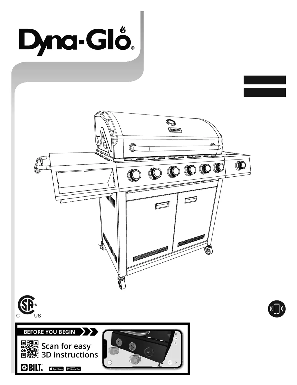 If the burner on your Dyna-Glo Grill won't light with a match, first, use the match holder found in the cabinet door to ensure the match reaches the burners. Then, verify that the natural gas supply shut-off valve is open. Check the connection between the gas hose plug fitting and sleeve coupling, disconnecting and reconnecting if necessary. Lastly, the burner inlet may be blocked, so clean the burner inlet (venturi) and burner as described by the Care and Maintenance section in the manual.