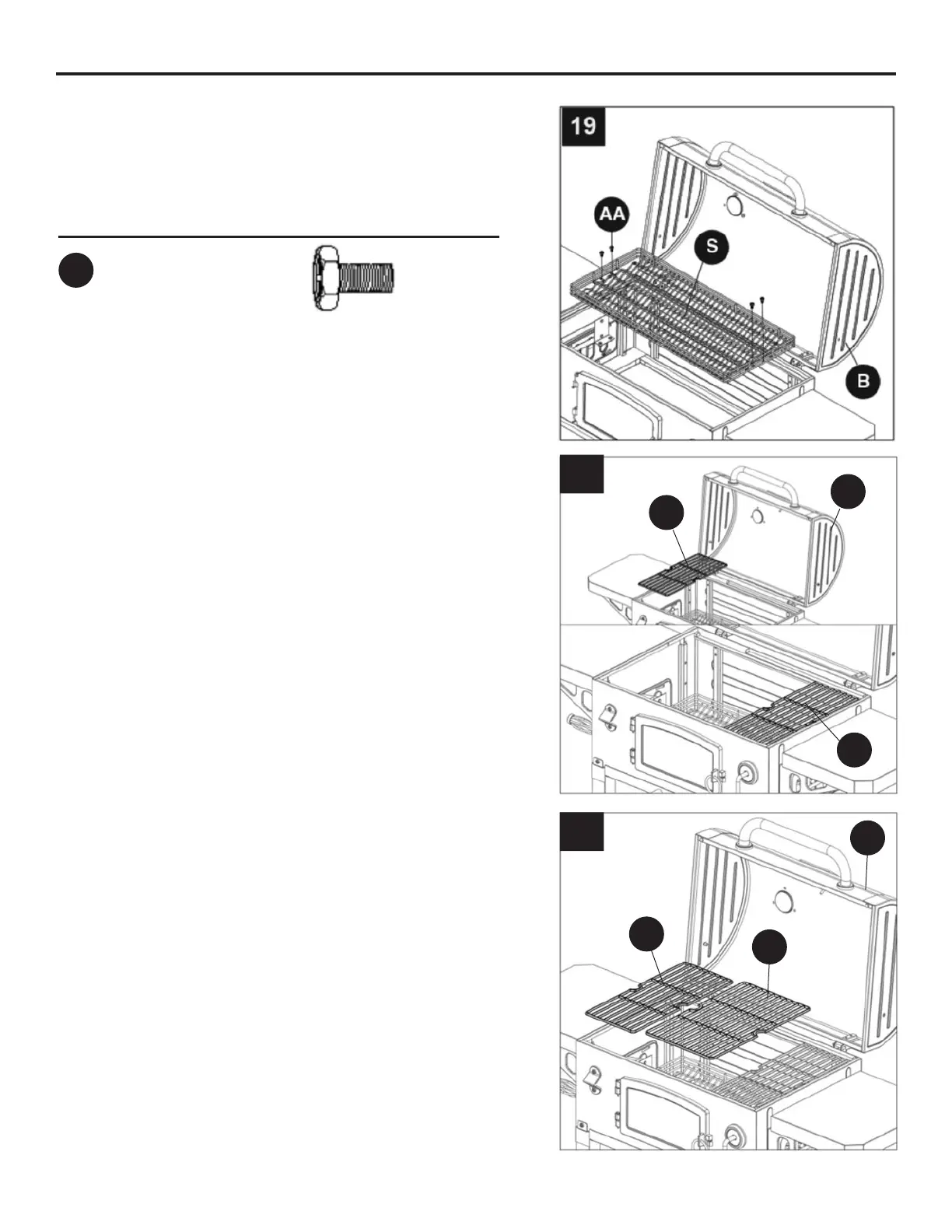 19. Placez le plateau à charbons (S) à l’intérieur