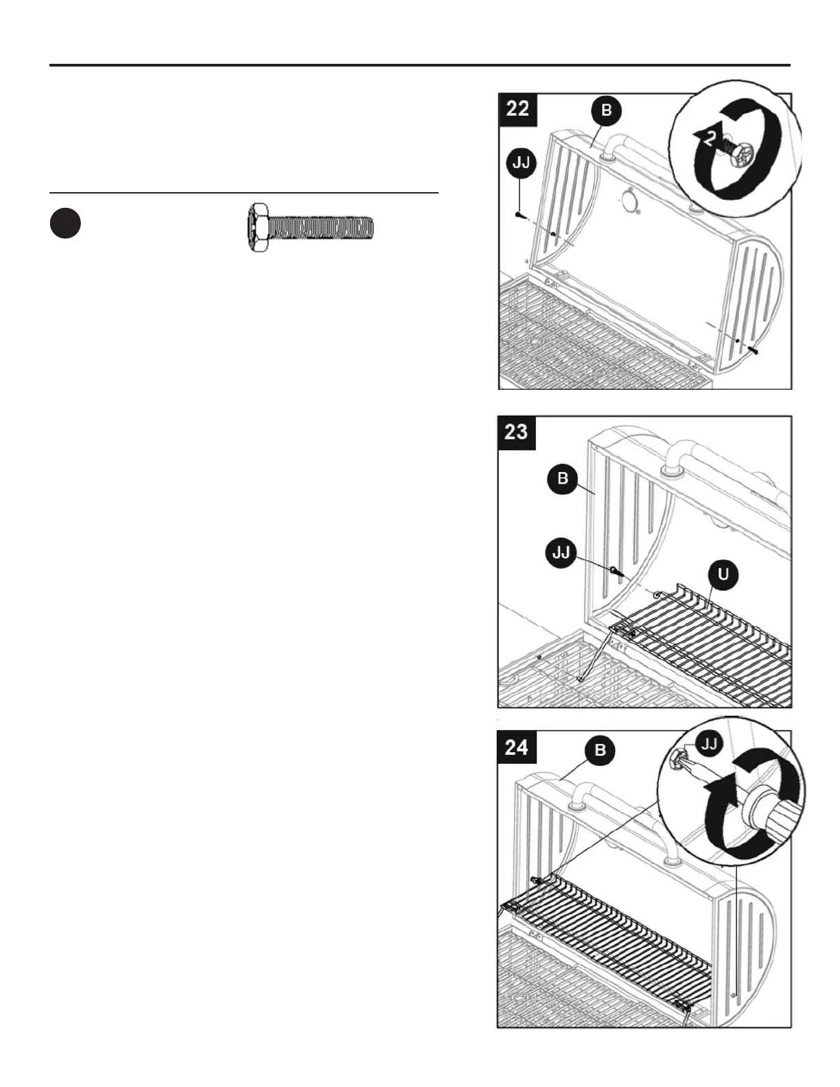 22. Attach one M6x30 bolt (JJ) on each side of lid