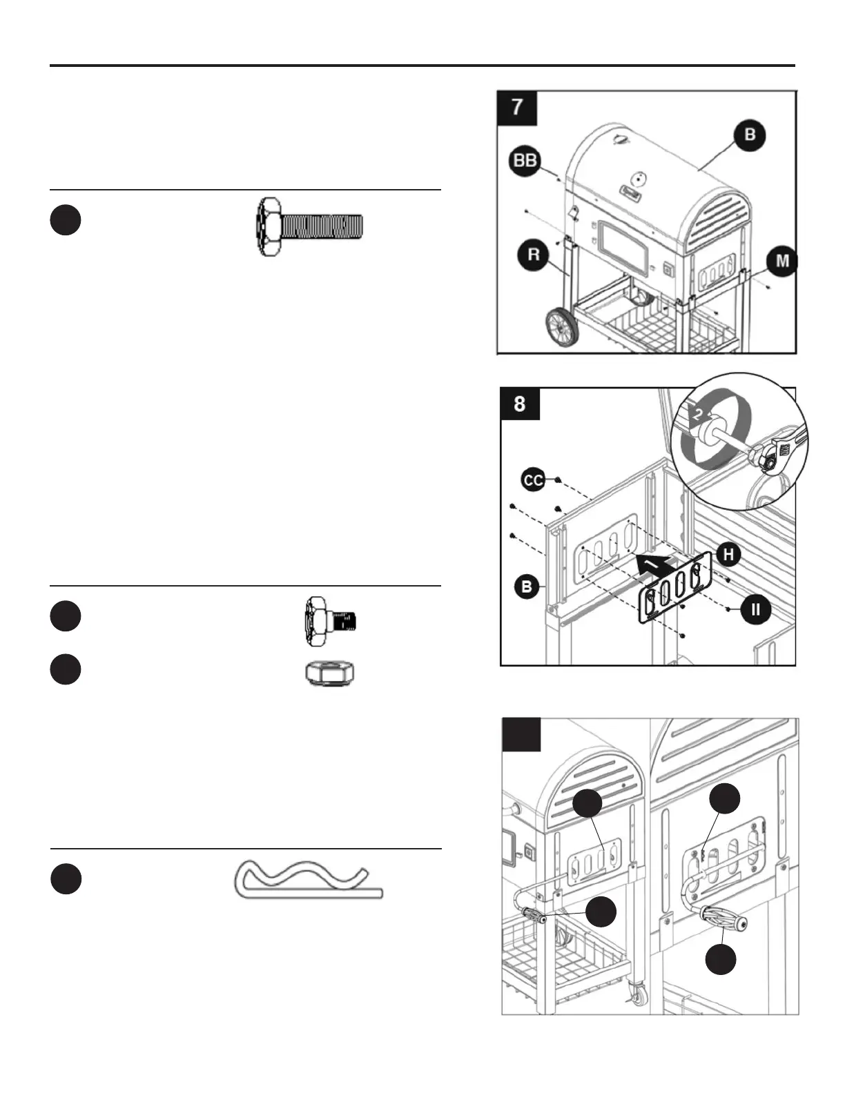 8. Fixez un registre (H) à l’intérieur du barbecue