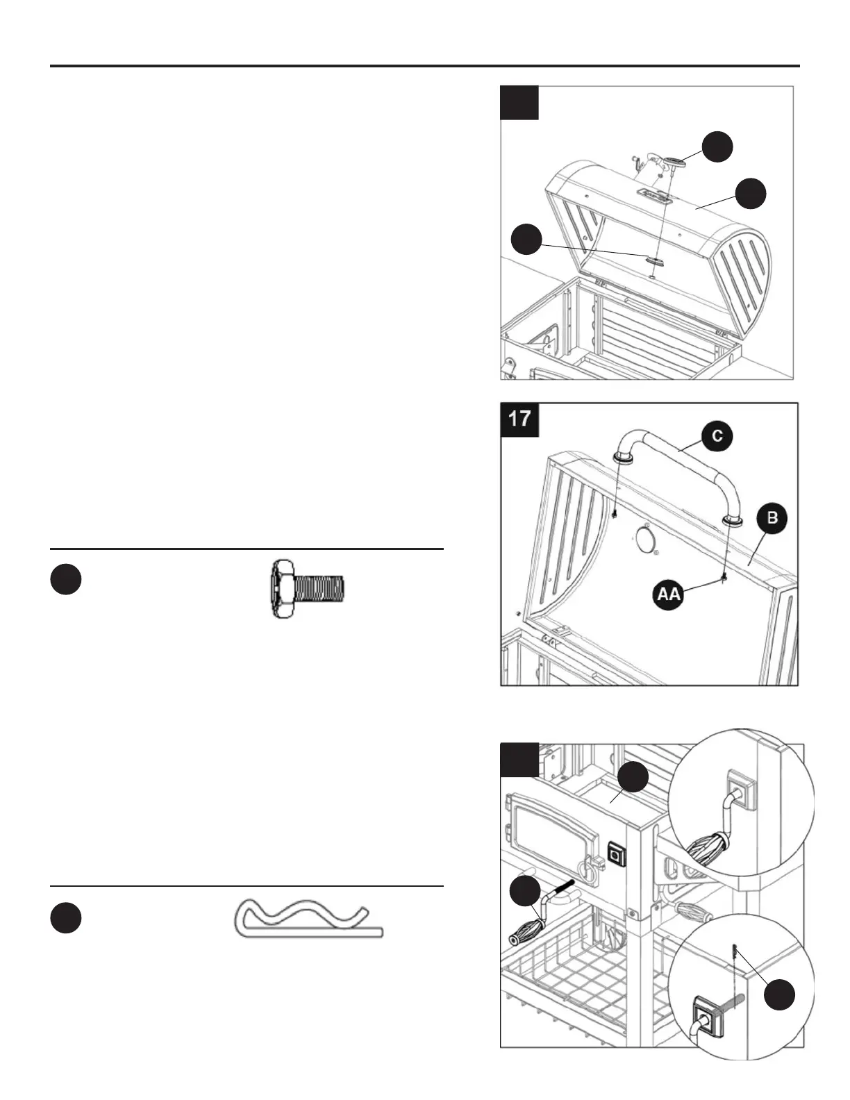 combustión (B). Asegúrela con un pasador (FF).