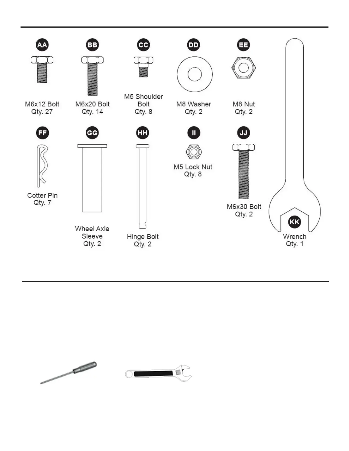 Tools Required for Assembly (not included): Phillips screwdriver, adjustable wrench