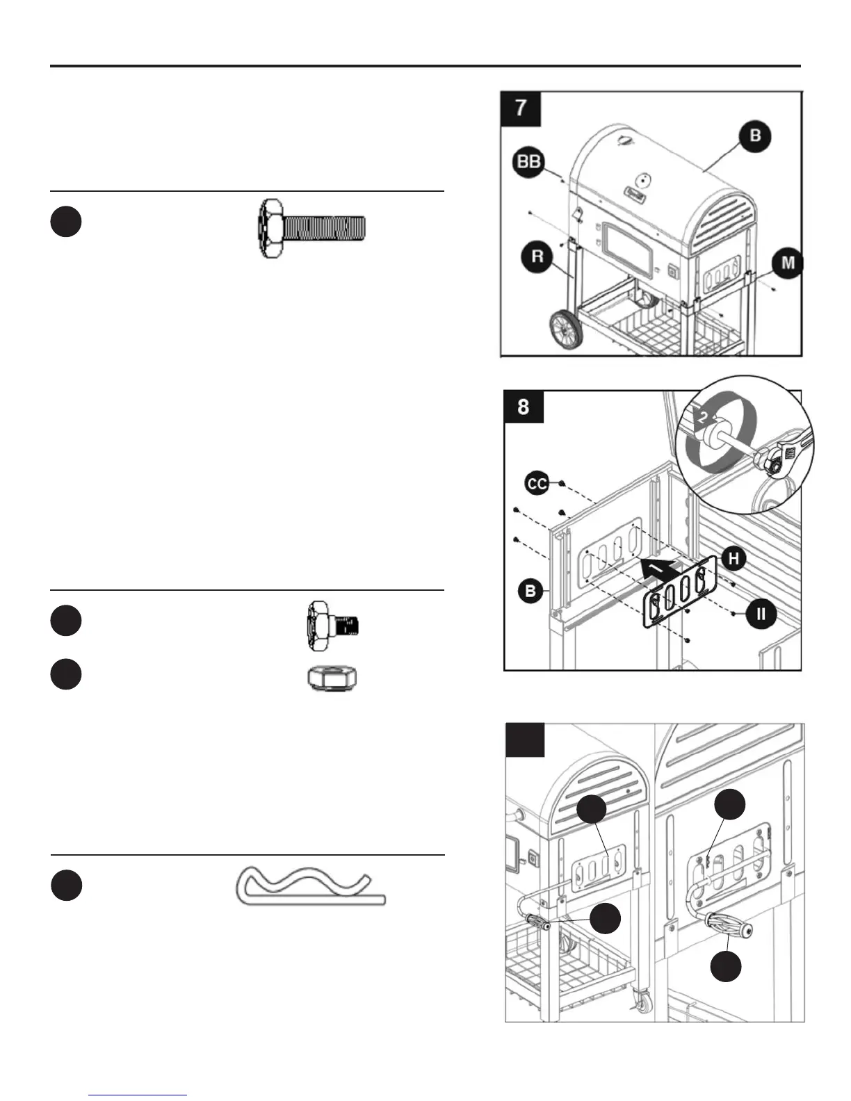 8. Fixez un registre (H) à l’intérieur du barbecue