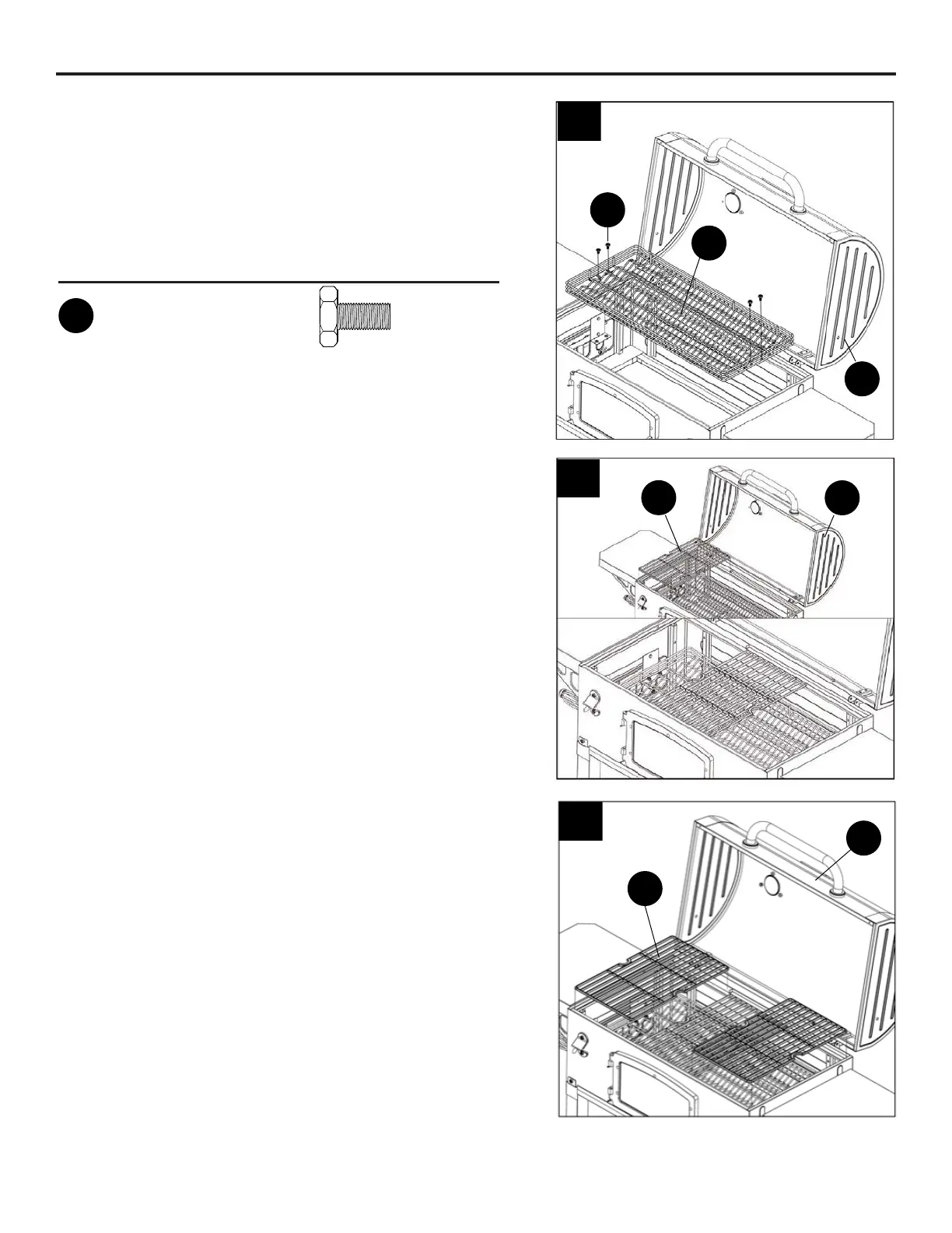 boîtier du barbecue (B) avec quatre boulons