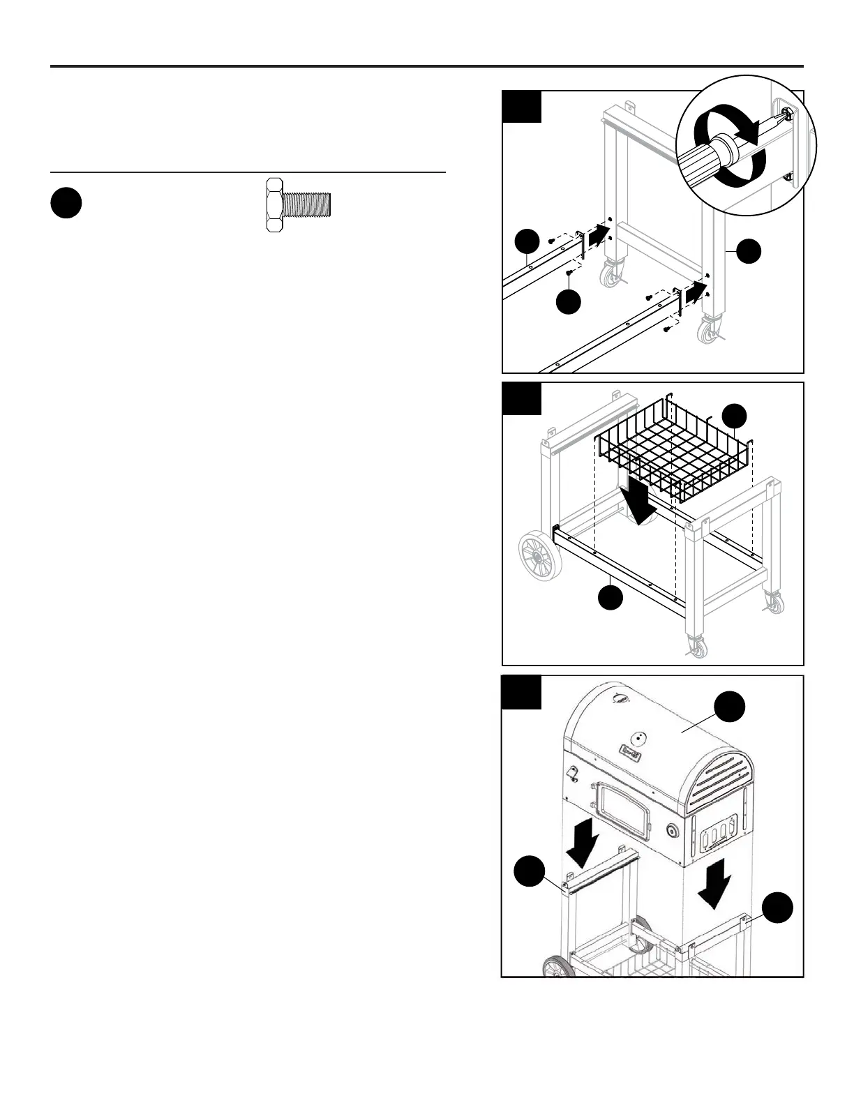 basket (O) are fully inserted into holes on cart